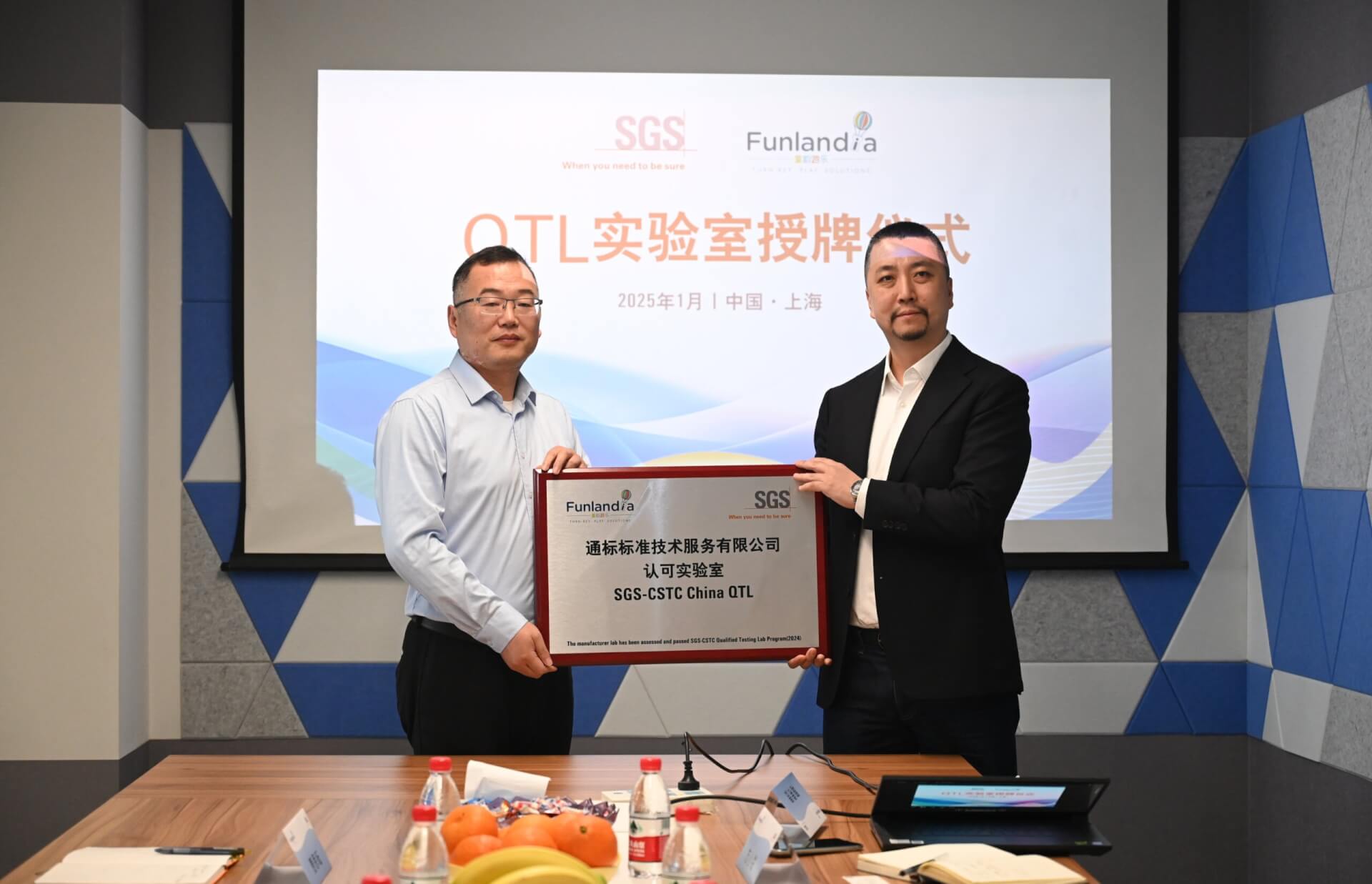 The certification ceremony was held at our headquarters in Shanghai, with representatives from both Funlandia and SGS present to celebrate this significant moment. Key attendees included Zhang Zhigang, Director of East China Light Industry Product Service at SGS, and Edward Wang, CEO of Funlandia. Beyond the formalities, the event sparked valuable discussions on future collaboration and technical innovations.